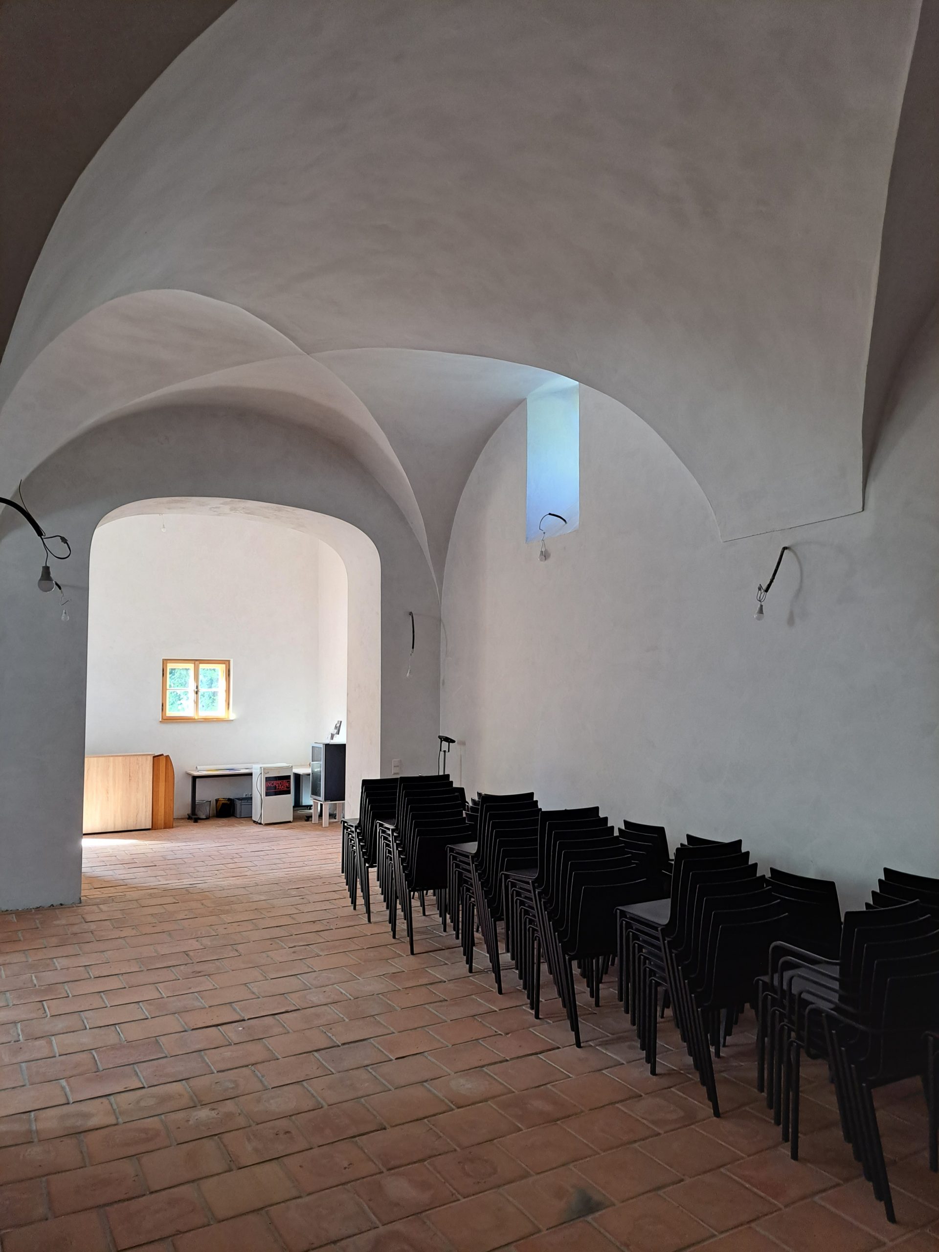 • Techn. Ausstattung: Verstärkeranlage, Mikrofone (mobil, Schwanenhals, Kabel), Leinwand 2 x 1,5 m, Beamer