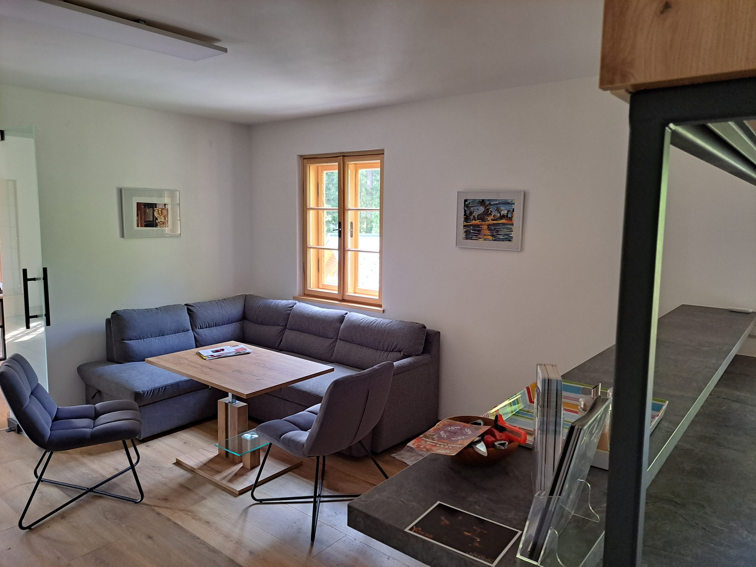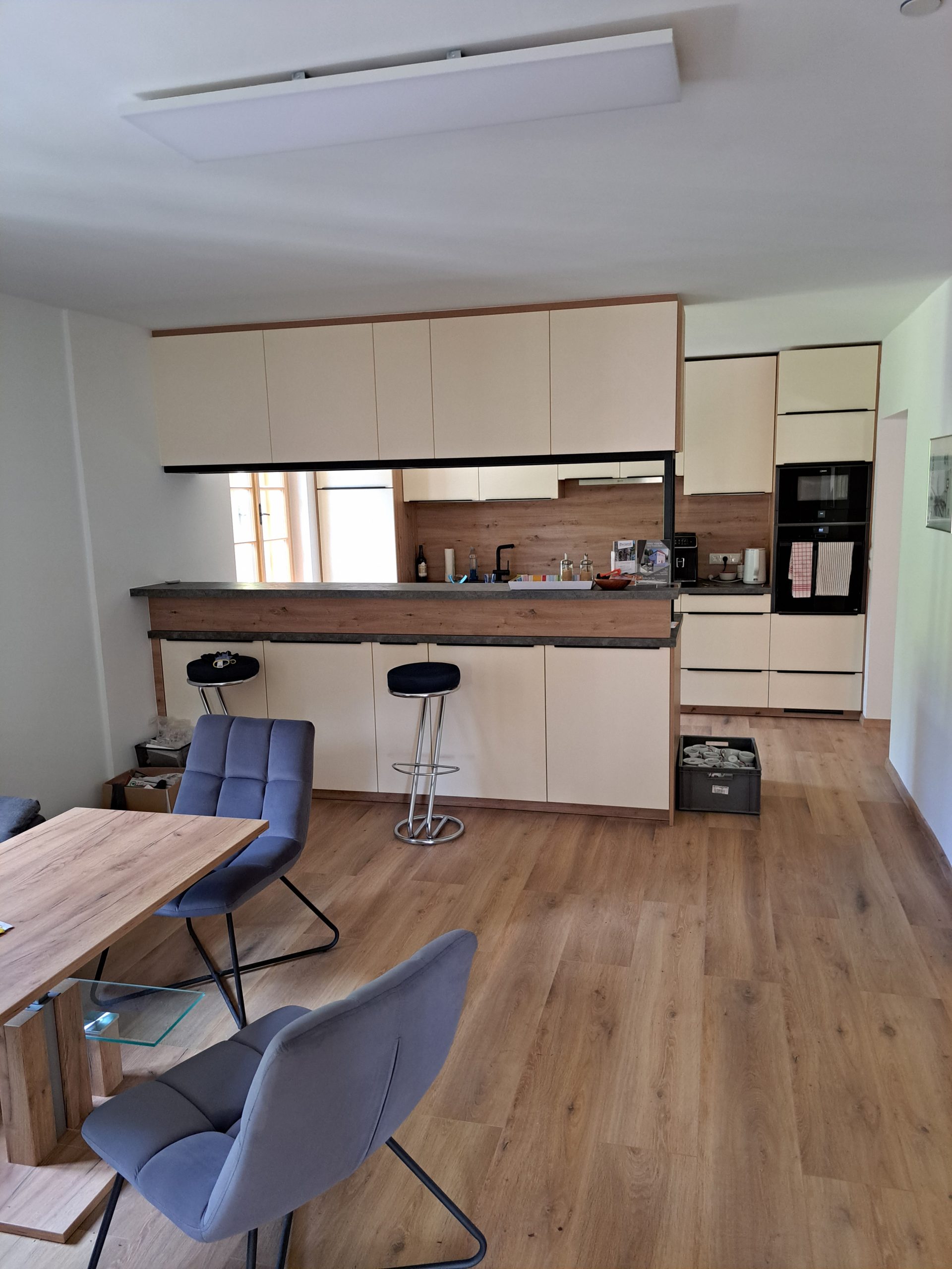 • Technische Ausstattung: Kühl-Gefrierkombination, Herd, Backrohr, Mikrowelle, Kaffeevollautomat, Geschirrspüler, Wasserkocher