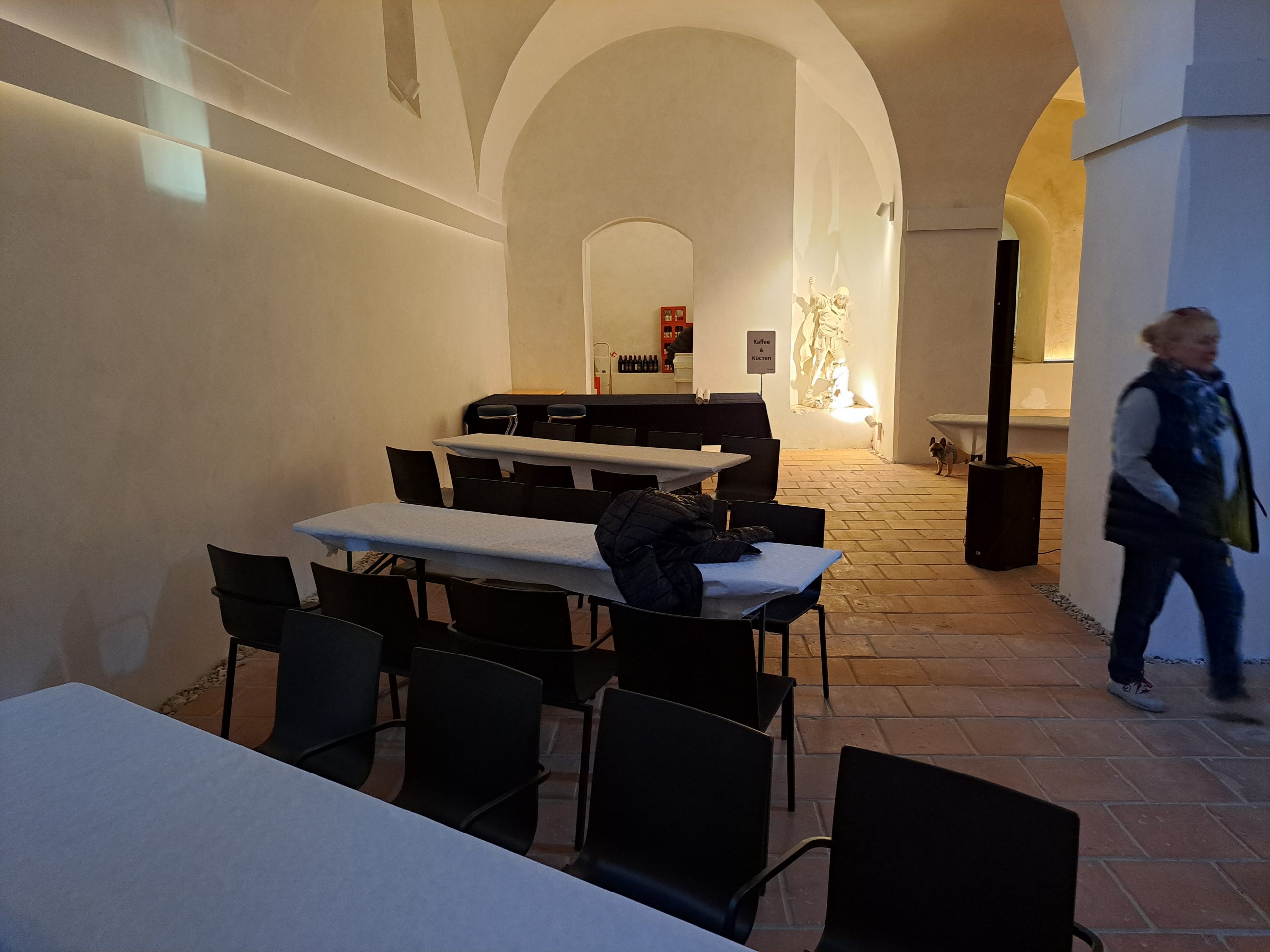 • Mobiliar: Stühle, Tische, Stehtische, kleine Bartische, Garderobe, Flipchart